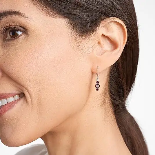 Amazon Essentials Sterling Silver Genuine and Created Gemstone Three Stone Birthstone Leverback Dangle Earrings